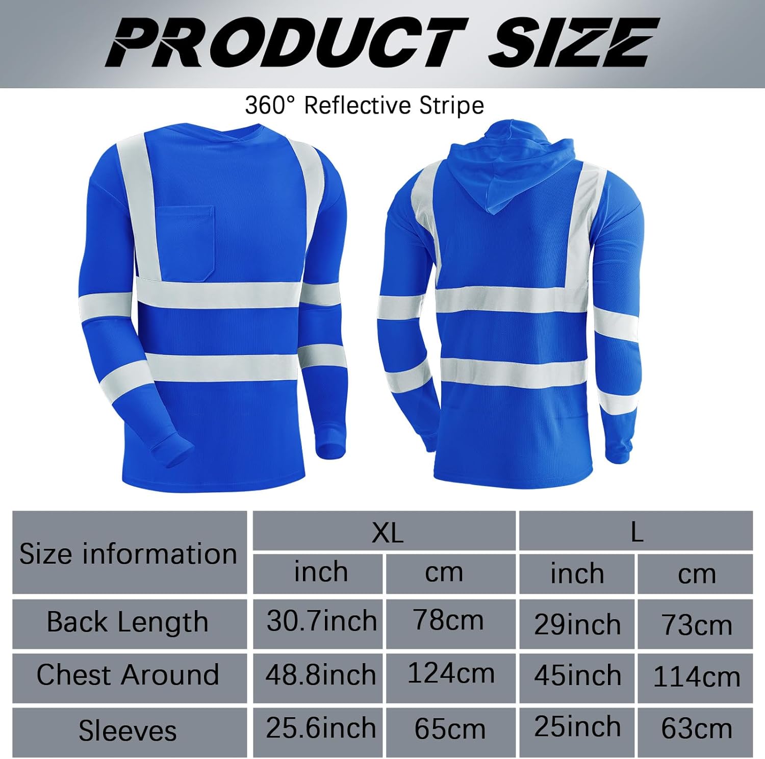 - 360 Degree Reflective Strips: the long sleeve high visibility shirts men feature 360 degree high visibility silver strips bright reflective which are able to draw attention in low strong light to keep you safe